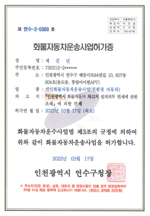 Personal freight vehicle transportation business license (eco-friendly vehicle)